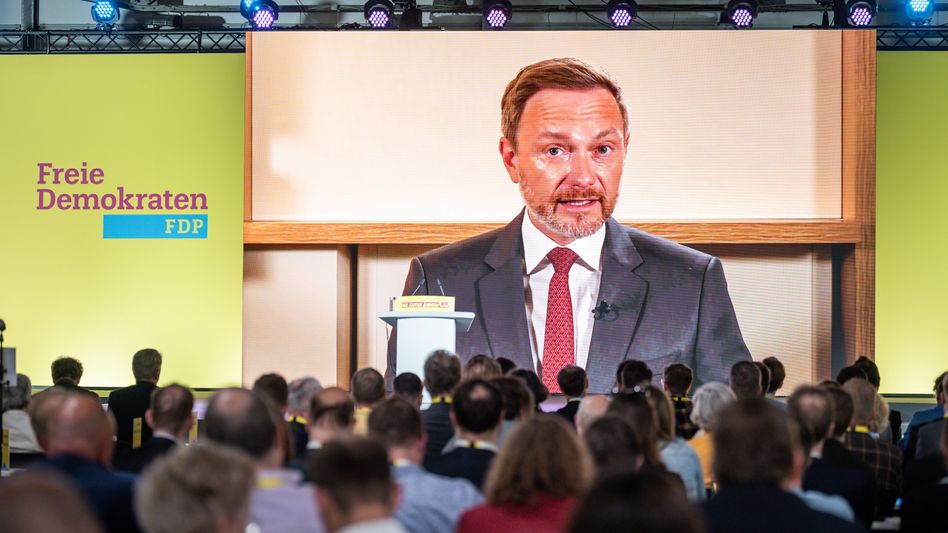 FDP-Parteichef Christian Lindner ist aus der Quarantane in Washington zum Parteitag in Berlin zugeschaltet