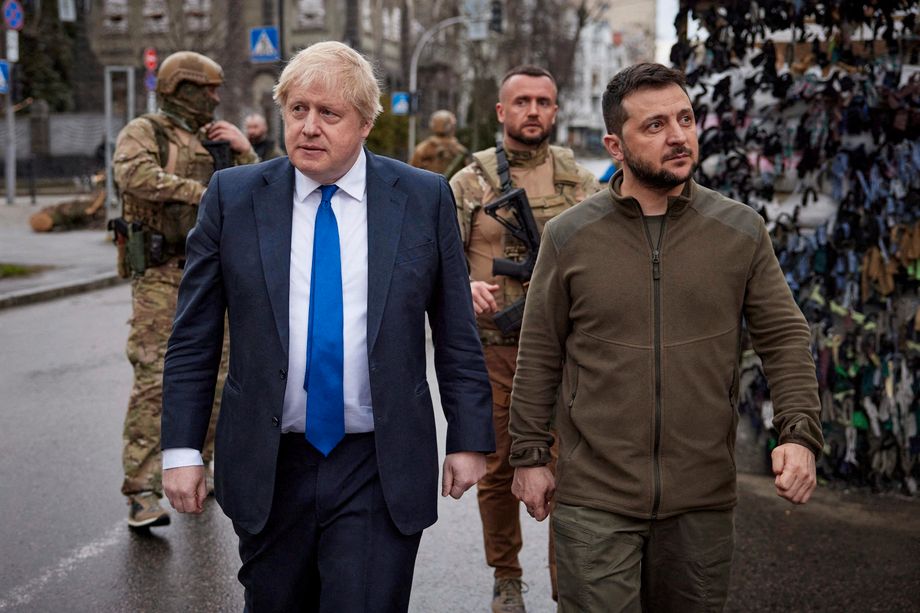 Am selben Tag, dem 9. April, beriet sich auch der britische Premier Boris Johnson mit dem ukrainischen Präsidenten. Bei seinem Besuch in Kiew sagte Johnson der Ukraine zur Abwehr des russischen Angriffs 120 gepanzerte Fahrzeuge und Anti-Schiffsraketensysteme zu. Nach dem Treffen sagte er, es müsse sichergestellt werden, dass »die Ukraine als freie und souveräne Nation überlebt und gedeiht«.