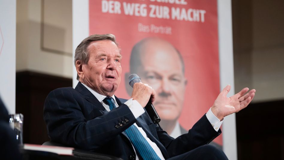 Gerhard Schorder spricht bei der Vorstellung einer Biografie uber Olaf Scholz im vergangenen Jahr in Hamburg