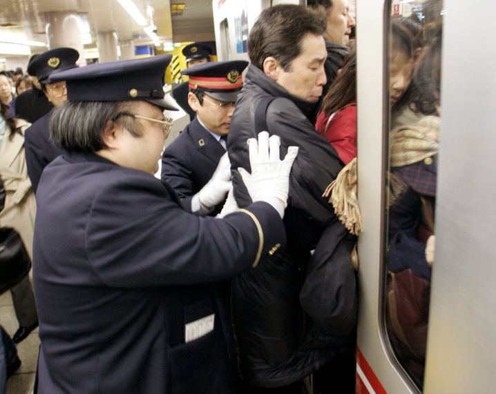 Vor vielen Jahren bin ich als Tourist in Tokio U-Bahn gefahren. Ich wurde zwar nicht von Männern in weißen Handschuhen in den Wagen gestopft, extrem eng war es trotzdem. Ich war froh, als es vorbei war.
