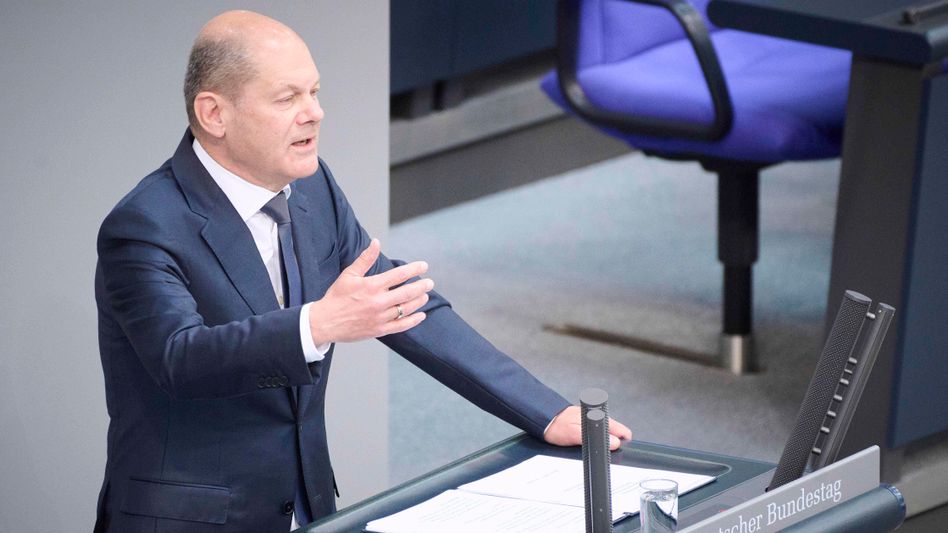 Kanzler Olaf Scholz bei seiner Rede zur Generaldebatte im Bundestag