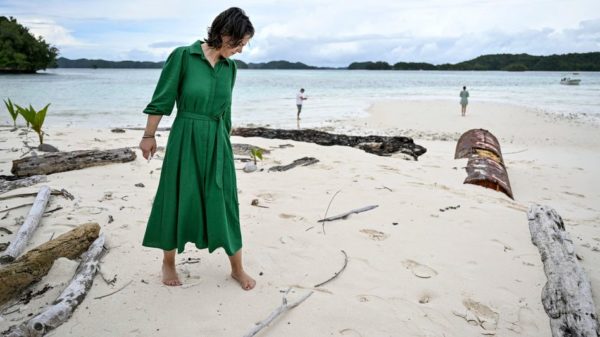 Außenministerin Baerbock auf Palau: Die Folgen des Klimawandels sehen Foto: Britta Pedersen / dpa Joe Aitaro breitet die Arme aus. »Da konnte man Fußball spielen«,...