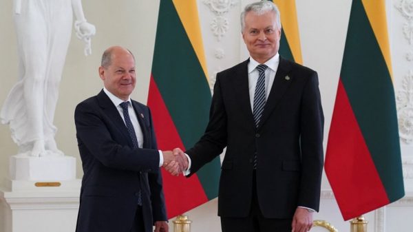 Bundeskanzler Olaf Scholz, Litauens Präsident Gitanas Nausėda (in Vilnius): »Als Verbündete in der Nato fühlen wir uns einander verpflichtet« Foto: JANIS LAIZANS / REUTERS Der...
